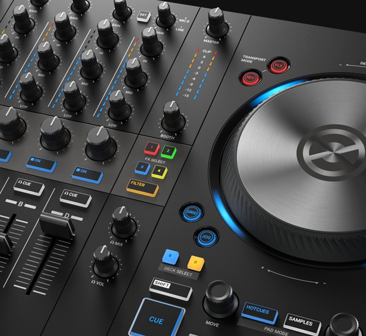 El Controlador DJ Native Traktor Kontrol S3 MK3 permite mezclar con cuatro decks, integrar micrófono y crear sesiones potentes con total libertad creativa.