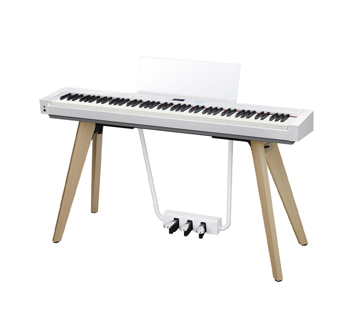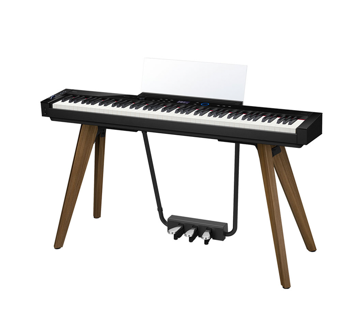 El PIANO DIGITAL CASIO PX-S7000 presenta líneas definidas y simplicidad de diseño que lucen bien desde cualquier ángulo y reflejan la estética y calidad tradicionales de un piano acústico. Incluidos la base y los pedales integrados.
