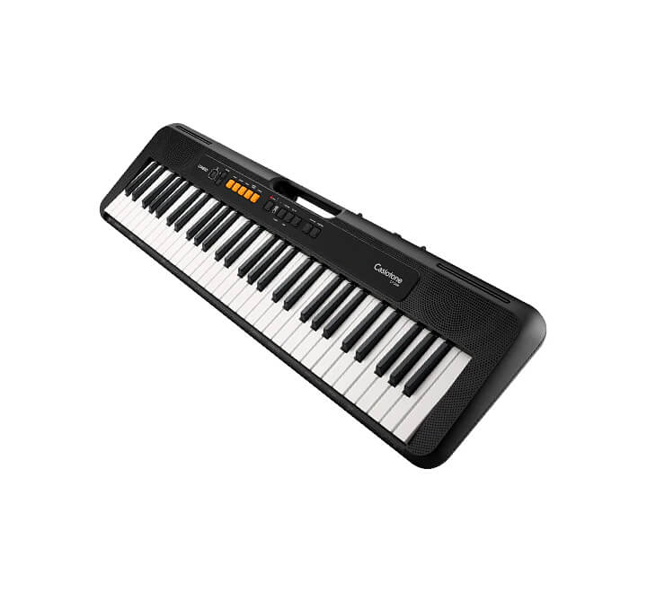 Con el TECLADO CASIO CT-S100, puede disfrutar de la música en cualquier momento y lugar. Su tamaño compacto de 930 mm x 256 mm x 73 mm es un 30 % más pequeño en volumen que los modelos CT-K1500 y CT-K1550. Su batería alcalina cuenta con aproximadamente 16 horas de duración. Llevarlo es muy sencillo, gracias a un mango en la parte superior del teclado y un peso de solo 3,3 kg. El diseño incorpora bordes y esquinas redondeados, lo cual permite transportarlo con seguridad.